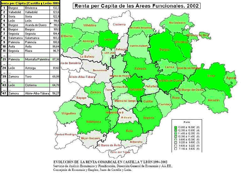 EVOLUCIÓN DE LA RENTA COMARCAL EN CASTILLA Y LEÓN
