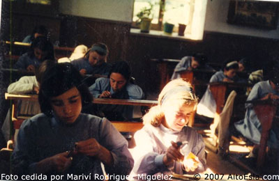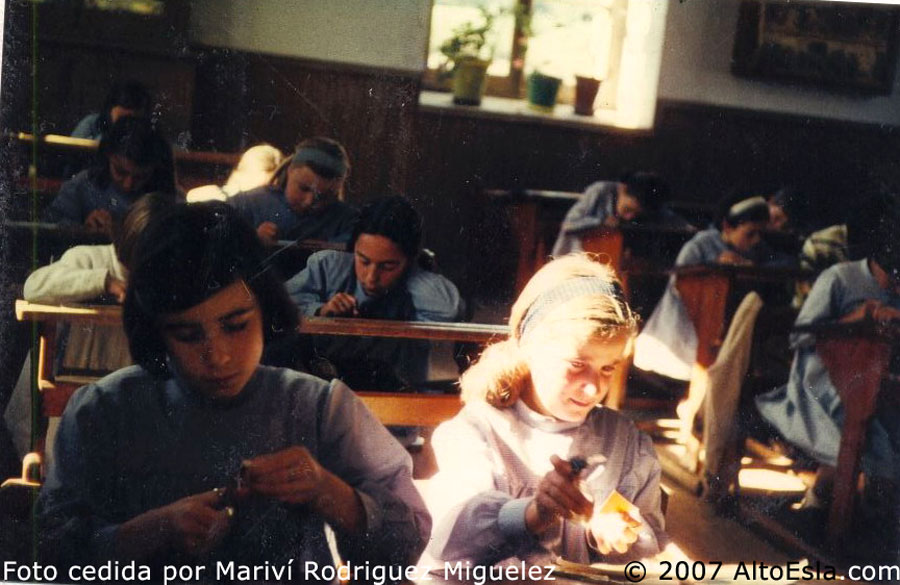 Años 1960. Niñas durante una clase, en la escuela