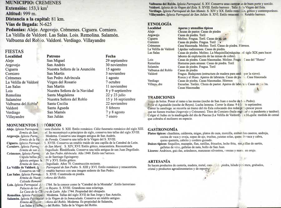 Crémenes. Conocido por su Sabinar y sus lápidas Vadinienses Estamos elaborando los textos para acompañar cada foto. Nos gustaría detallar en cada una a quién pertenece, el bario, aquella historia o acontecimiento con el que estuvo relacionada, etc... Si nos puedes ayudar a comentar cada foto, for favor, envíarnos un correo a colaborador@altoesla.com PINCHAD EN CADA FOTO PARA AMPLIARLA <<La Villa
