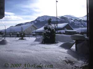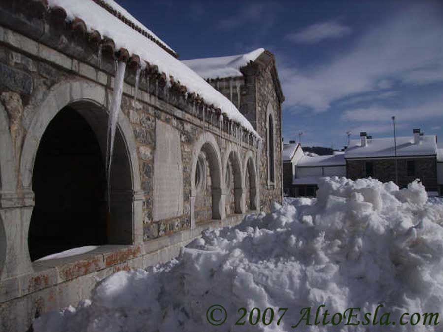 imagen de la nieve adornando los forjados del muro. |