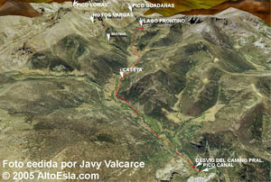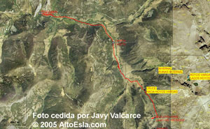 La ruta sobre esas mismas ortofotos, pero en una visión